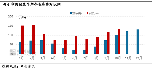 另外,生产企业库存也是创新高,据卓创资讯监测,截至10月9日,2025年国内尿素生产企业库存达到133.8万吨,较年内低点增幅约101.8%。1-10月企业库存均值为107.3万吨,创历史新高,较2024年均值增70.6%。在一定程度上对生产企业库存压力有所增加,价格上涨条件暂时稍显薄弱。